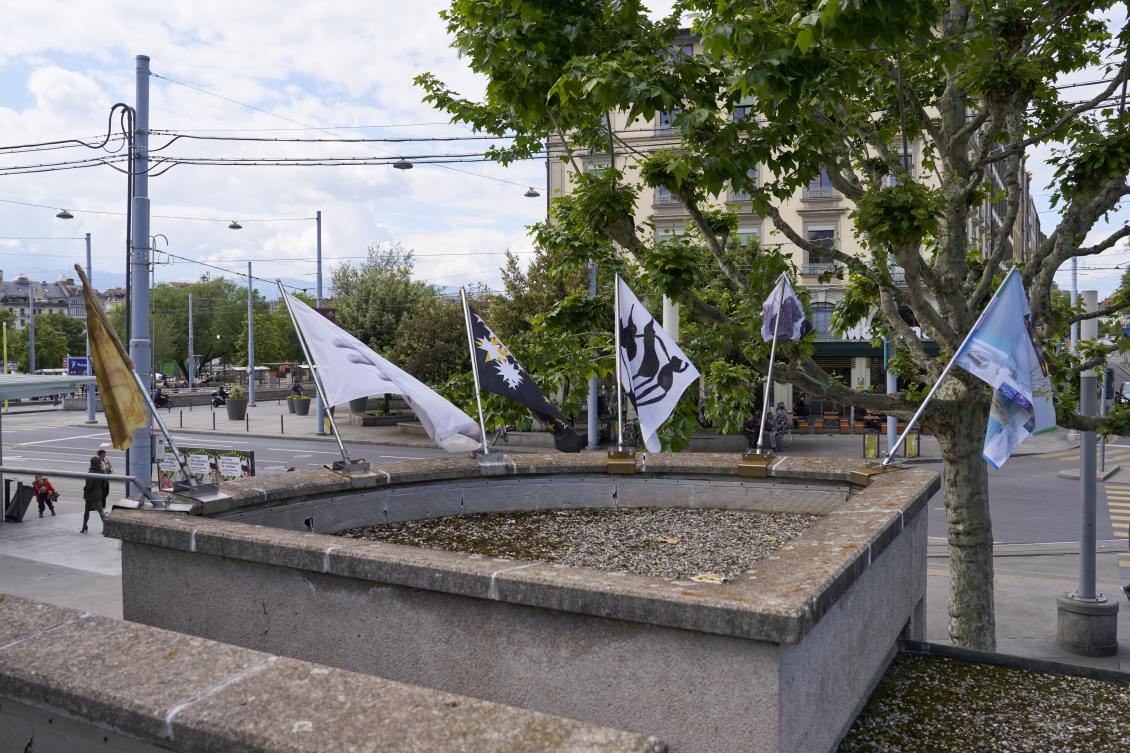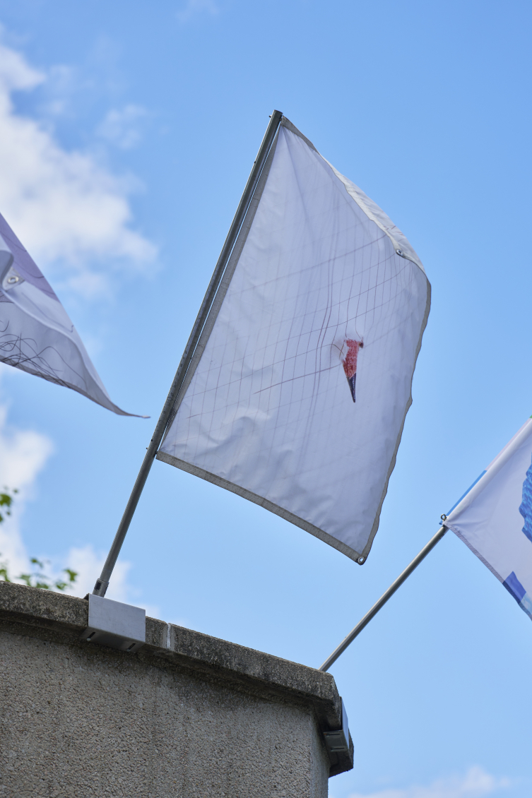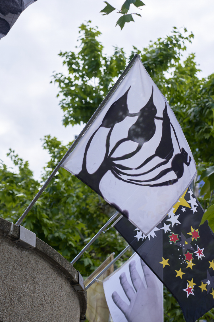 Le projet a pris la forme d’une chaîne : chaque artiste invitéex par la personne qui l’a précédéex à exposer un drapeau et à transmettre à son tour le relais, passant par la Suisse, les Pays-Bas, l’Italie et Taïwan.