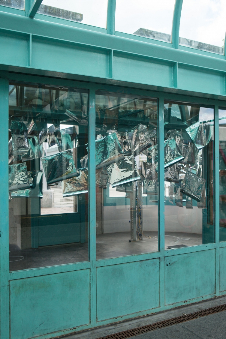 * For his solo exhibition "La tempête dans le nuage informatique" Till Langschied expands the installation of silver flags from his work Datapotheosis (2020) to fill the entire space of Zabriskie Point. The flags are reminiscent of Tibetan prayer flags, which send out blessings when moved by the wind. The artist draws a parallel between this religious function and the quasi-spiritual character of data traffic and uploads into an invisible ‘cloud‘. As such an entangled cloud the flags in the exhibition space can be seen as units in a server farm, enduring a constant storm of electronic impulses rushing through them.