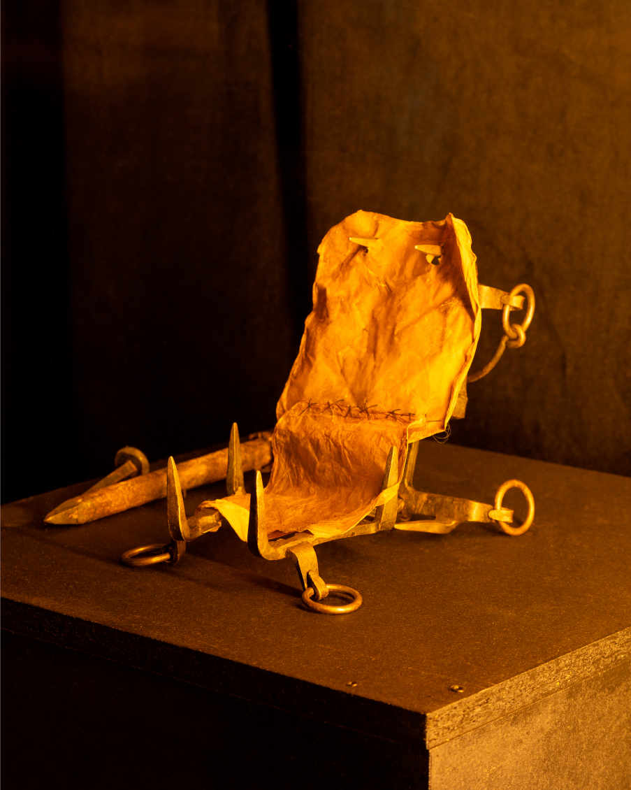 Surmontant les incantations, « Climbing a Dive » de Nagi Gianni explore une dynamique de tension et de suspension en ancrant des parties moulées de son corps sur des mâts attachés au bâtiment. Transposant les tensions intérieures de l'identité évolutive de l'être, son travail capture l'impulsion du corps à se libérer de sa posture. Le corps s'avance pour explorer, porté par l'attraction gravitationnelle du monde extérieur. Ses membres perchés et plongeants s'accrochent aux piquets, s'élevant et retombant pour saisir leur équilibre au vent.
