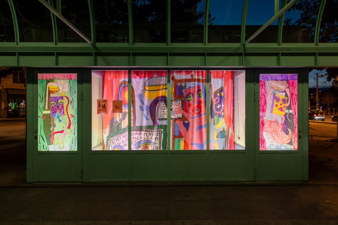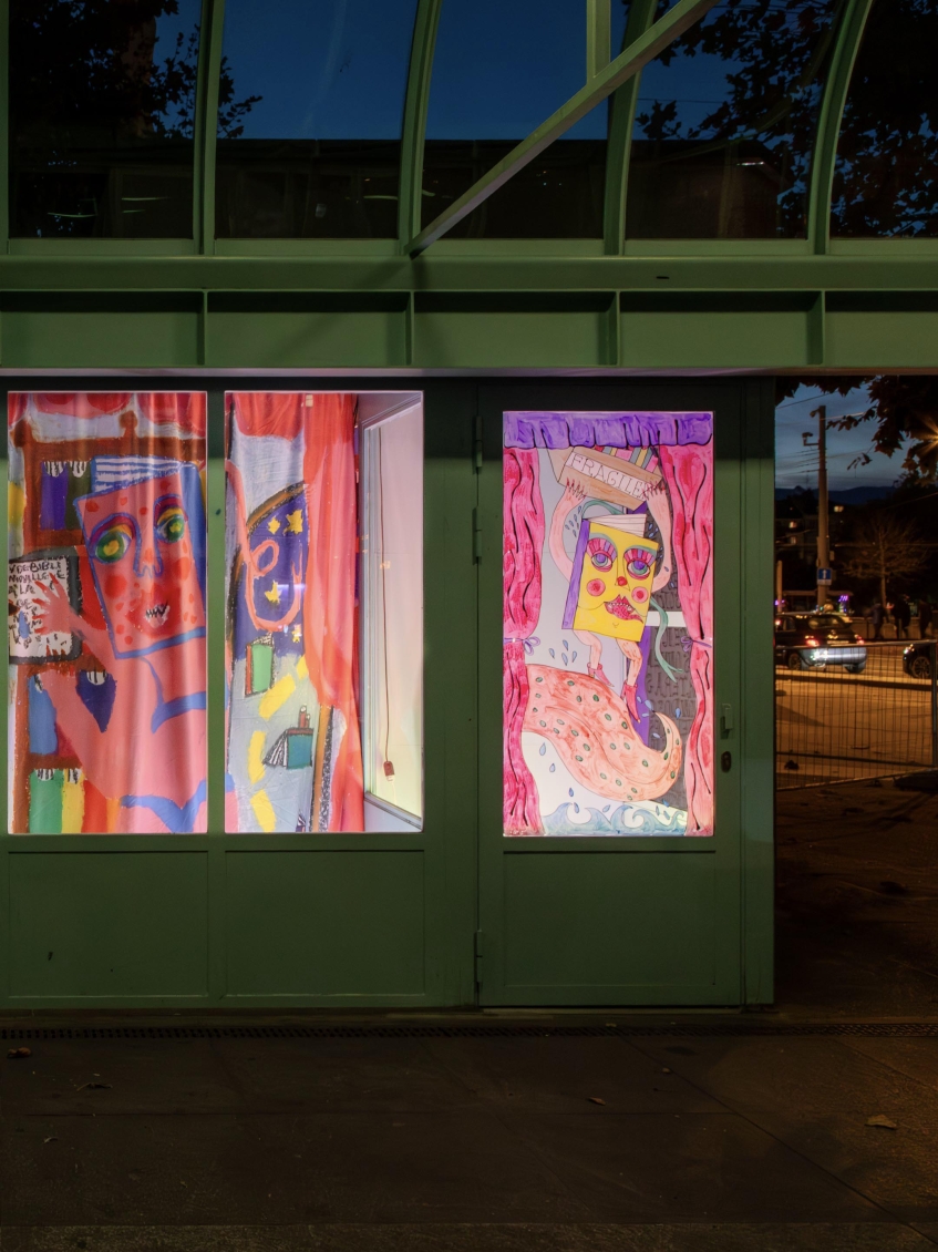 Pour Zabriskie, Léa Katharina Meier présente “Les Ciseaux Du Placard De La Bibliothèque”, une installation constituée de grands dessins imprimés sur tissus.